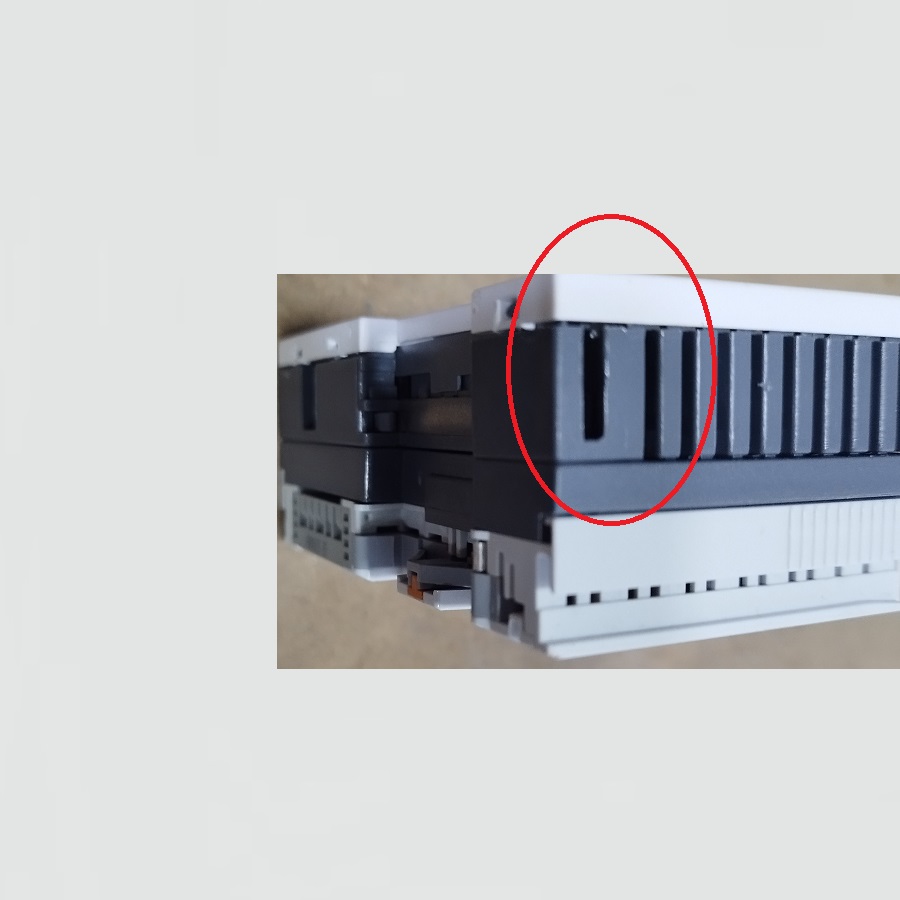 THE ANCHORAGE TO THE DIN RAIL IS MISSING (CAN BE MOUNTED WITH THE CPU AS WELL)