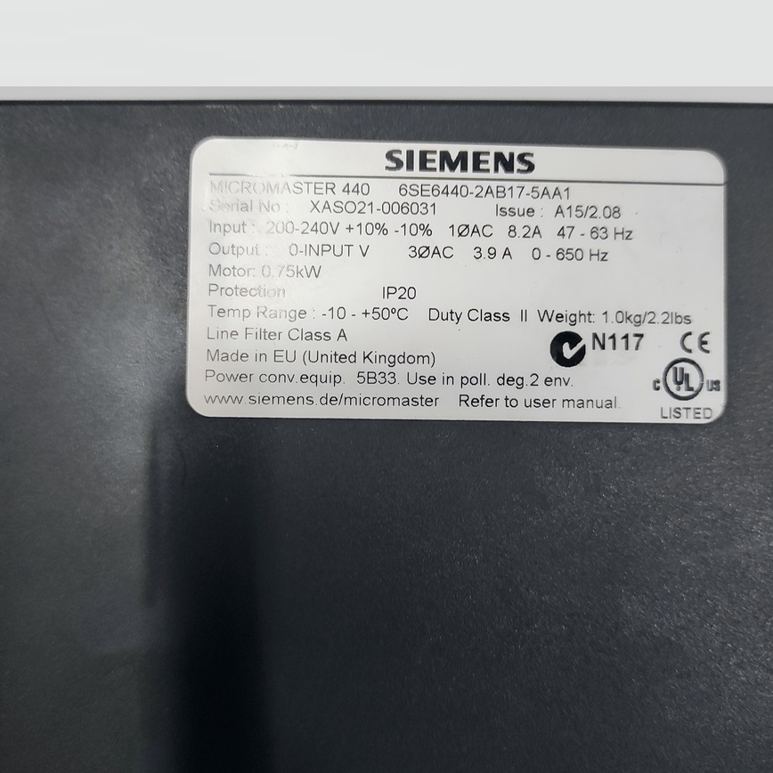 HomeMOTION SIEMENS MICROMASTER 440 – 6SE6440-2AB17-5AA1 – 6SE6 440-2AB17-5AA1 – INVERTER MOTOR