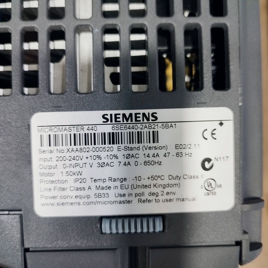 HomeMOTION SIEMENS MICROMASTER 440 – 6SE6440-2AB21-5BA1 — 6SE6 440-2AB21-5BA1 – INVERTER MOTOR
